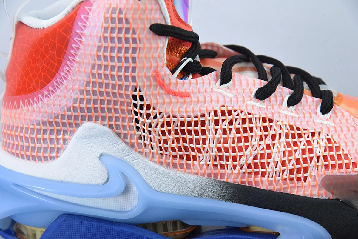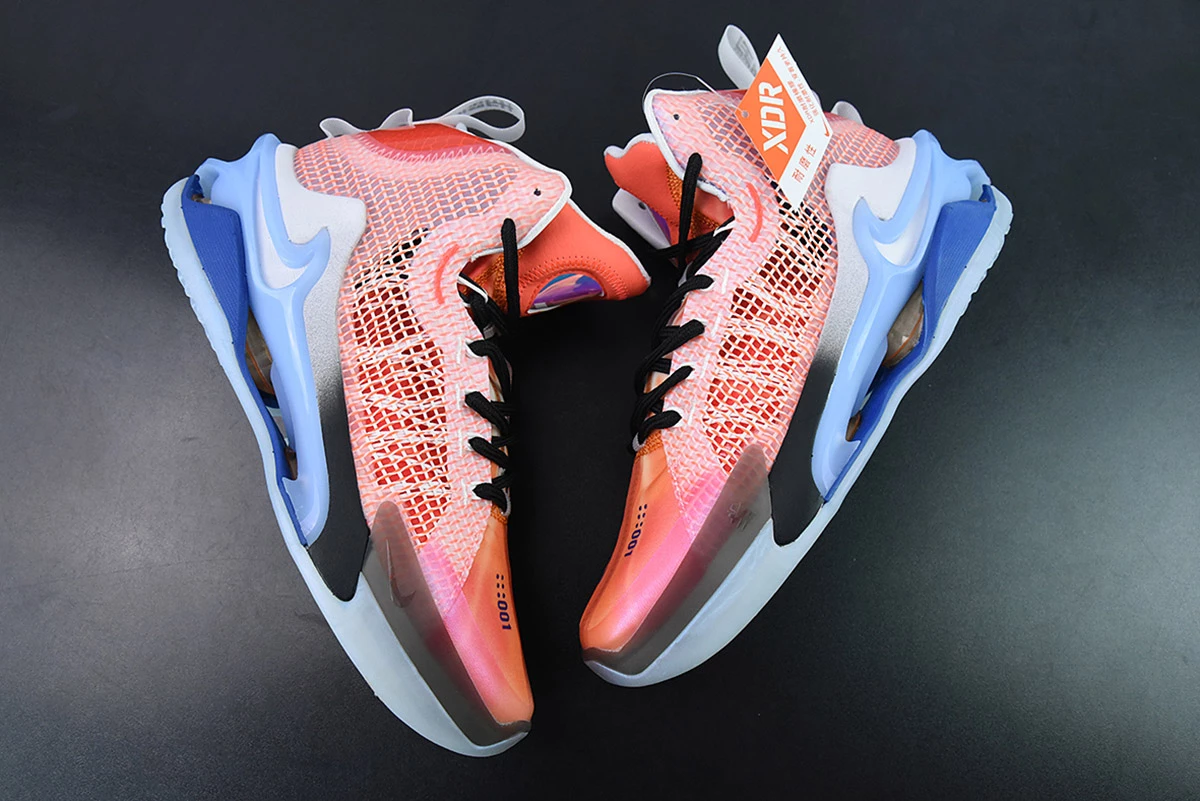 The GT Jump uses a full-length Zoom strobel setup which sits on a Pebax jump frame for rigidity. A large Zoom unit is featured on the heel and forefoot as well, to make the Zoom Air double stacked and bring the ultimate impact protection. A nod to the past is seen on the lateral outrigger, which features a Nike Shox-like graphic. Lastly, a rubber outsole featuring a herringbone pattern and perforations to let the Zoom units expand finish off the sneaker.