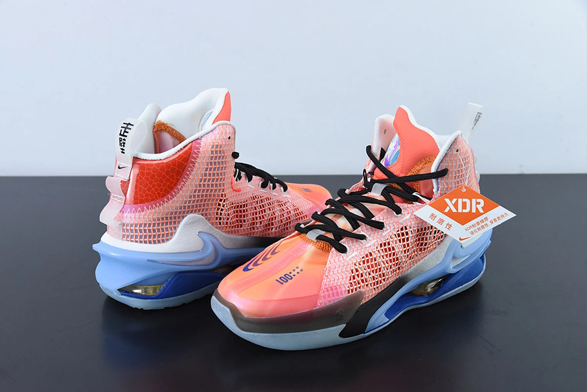 The sneaker uses a half bootie construction in infrared which features white JumpWire on the overlay, which is a newer and more breathable version of Flywire which is held together by Fuse. Flywire is used underneath the JumpWire overlay for lockdown and containment. A dragonfly appears on the tongue as well as on the insole with the pulltab on the heel featuring Chinese characters.