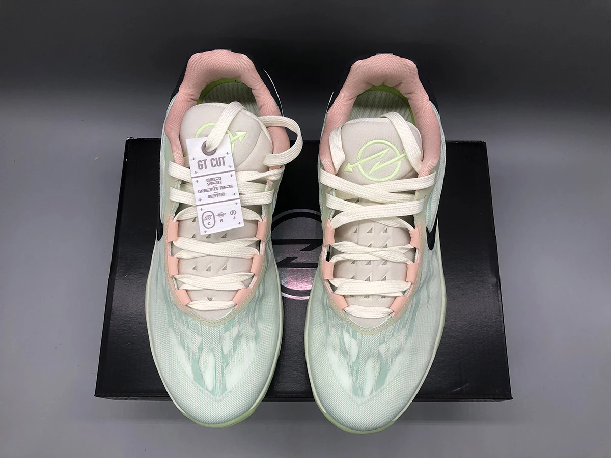 This offering of the Air Zoom GT Cut 2 arrives in a Coconut Milk, Arctic Orange, and Barely Green color scheme. Unlike its predecessor, it features a unique pattern on its upper equipped with a brand new molded heel and popular full-length Zoom Strobel.